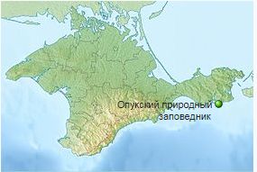 Вот где он находится на Крымском полуострове. Мы ехали с противоположного берега по таким ухабам... что на простенькой машинке я бы не советовала вовсе. Назван по горе Опук, создан недавно, в 1998 году, с целью изучения местных представителей флоры и фауны. Собственно, что Казантип, что вот это вот - совершенно непонятные заповедники, увидеть и почувствовать что-то заповедное почти невозможно, можно только насладиться рассказами энтузиастов. Красоты там никакой нет (на Казантипе хоть бухты/скалы), на этой горе. Мы прошли некой экотропой, по дороге у нас была пытка мошкой, которые залезали во все дыры, в уши - особо неприятно! Гид почти ничего не рассказывал, а то, что все же вещал, слышали только несколько человек. Потом привел нас к роднику, к которому мы радостно бросились и отпрянули... там кишмя кишели осы.