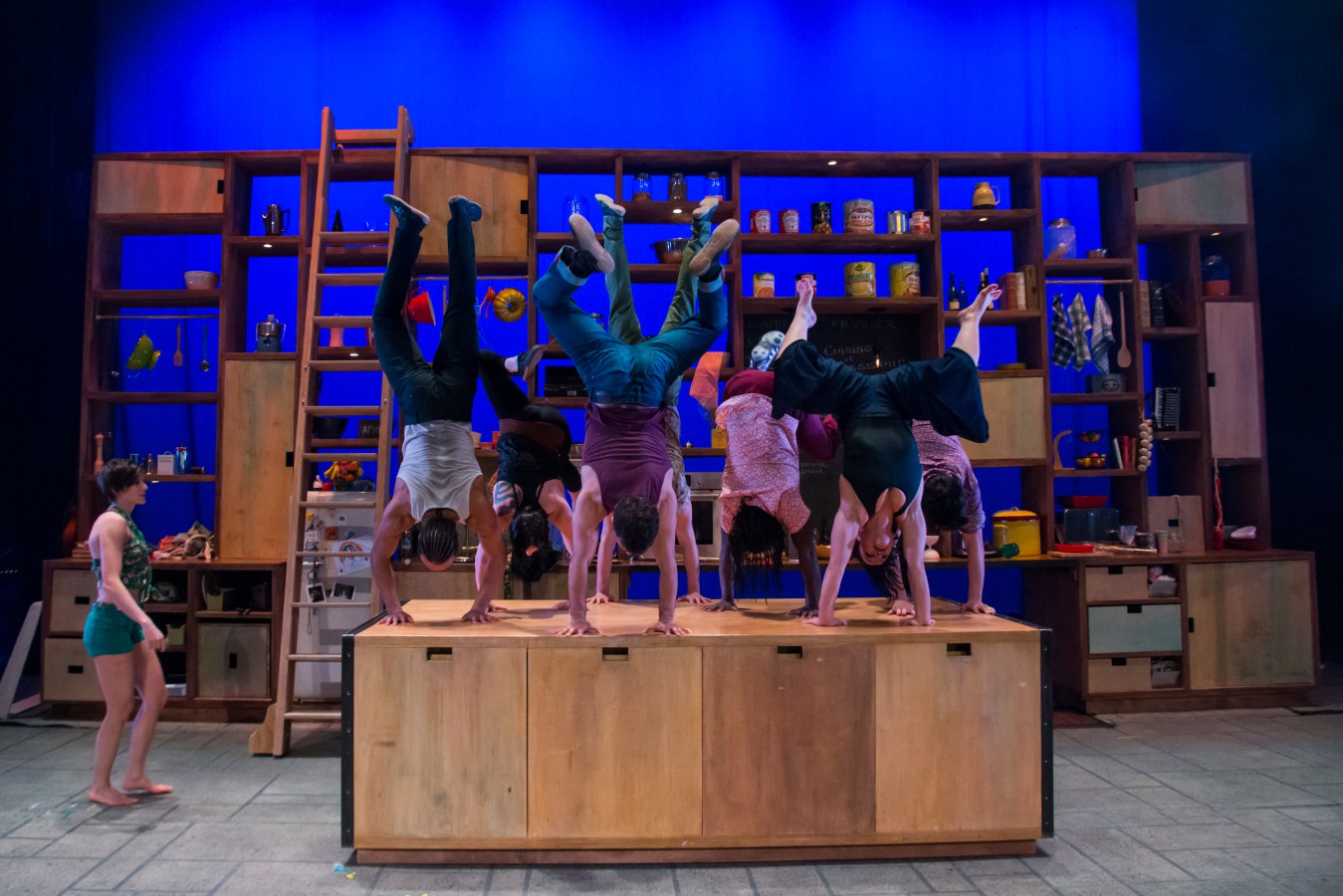 Труппа многонациональная, есть даже две русские девушки. Артисты постоянно рассказывают какие-то истории, насколько я поняла, из своей жизни. Иногда они кажутся слишком затянутыми, но в то же время создают ту самую теплую атмосферу доверия и искренности, которая я так оценила в спектакле. Номера завораживающие, особенно меня впечатлили акробатические танцы - такого я никогда не видела, и этот новый жанр наверняка будет развиваться. Но и китайский пилон, и воздушная акробатика, и прыжки сквозь квадратные рамки были бесподобны. Спектакль интерактивный, артисты все время приглашают зрителей помочь в готовке - или отведать блюда. В конце всех угощали банановым хлебом, рецепт которого даже размещен в программке.